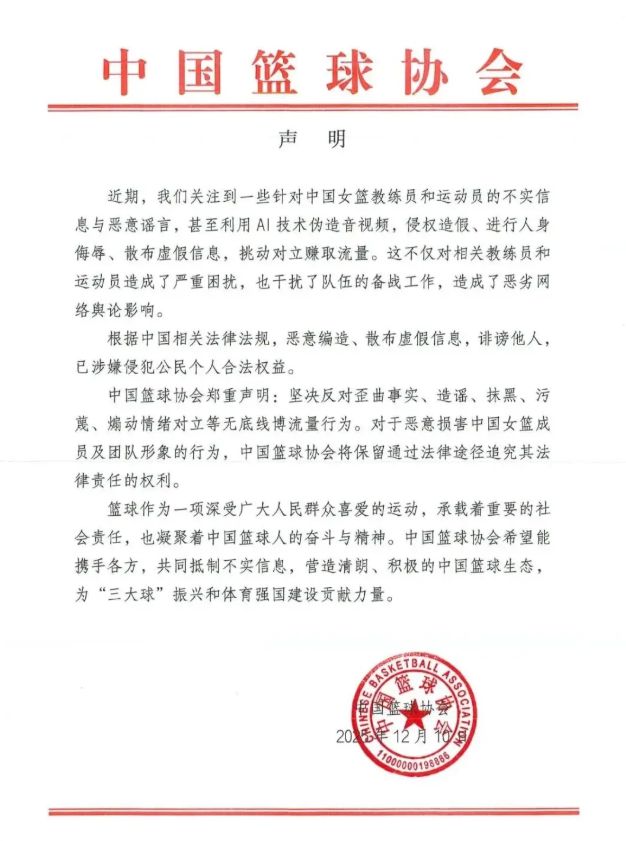 就在謠言快要讓女籃軍心渙散的時(shí)候,中國(guó)籃協(xié)的一紙聲明像一盆冷水,澆醒了裝睡的人。
