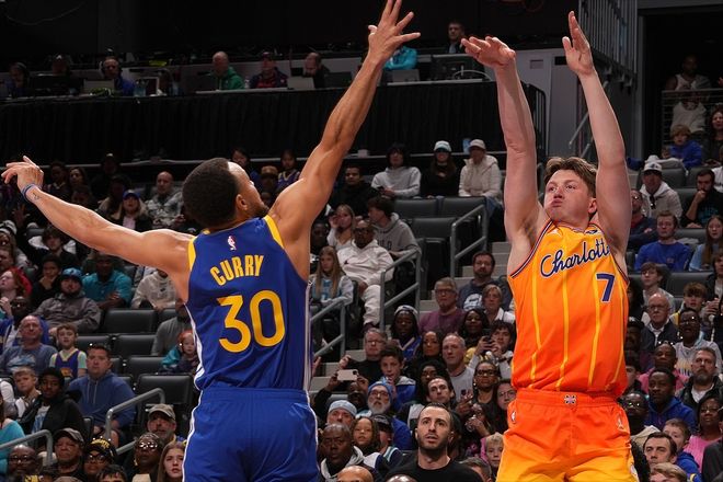 這場(chǎng)比賽,庫(kù)里命中了5+三分,這么一來(lái)他職業(yè)生涯的單場(chǎng)命中5+三分的場(chǎng)次來(lái)到了400場(chǎng),歷史第一。也難怪,賽后克尼佩爾在接受采訪時(shí)直言:“我們竭盡全力了,但真的攔不住??!”當(dāng)然,克尼佩爾今天的發(fā)揮仍然十分出色。全場(chǎng)11投7中得到20分5籃板8助攻,三分7投4中十分高效。而且,今天這場(chǎng)賽后,克尼佩爾單場(chǎng)進(jìn)入‘180俱樂(lè)部’,并且得到20+分?jǐn)?shù)的場(chǎng)次,也超過(guò)了庫(kù)里??梢赃@么說(shuō),雖然今天這場(chǎng)比賽輸了,但克尼佩爾絕對(duì)是未來(lái)可期。當(dāng)然了,對(duì)于球迷們來(lái)說(shuō),最重要的還是克尼佩爾何時(shí)能夠離開(kāi)黃蜂隊(duì)?