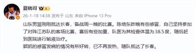 另一個(gè)感冒的則是郭凱,此前對(duì)陣江蘇隊(duì),他都沒(méi)有打。如今情況已經(jīng)好轉(zhuǎn),隨隊(duì)來(lái)到了長(zhǎng)春,大概率是要登場(chǎng)的。