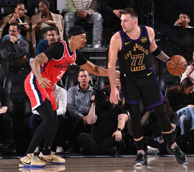 末節(jié)東契奇不在場湖人打出16-7瘋狂追分,沒有東契奇的陣容才是湖人最能防的陣容,東契奇登場命中一個高難度的金雞獨立三分球,可隨后因為東契奇的防守實在是太差,快船再度拉開到12分,依靠隊友的努力追到只差6分,但東契奇空位的續(xù)命三分不投,等對方防守回來再翻身跳投打鐵。