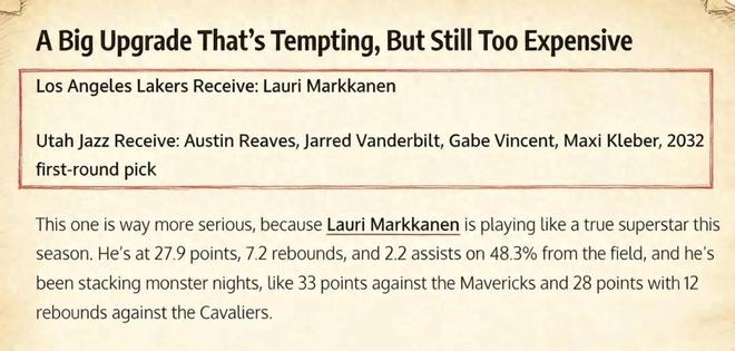 美媒《Fadeaway World》便提出了一套5換1的交易方案,引發(fā)巨大爭議。具體方案為——