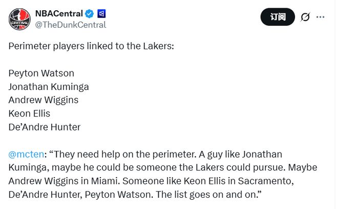 湖人現(xiàn)在的外線防守問(wèn)題很大,他們也一直希望升級(jí)側(cè)翼,但湖人的籌碼很有限,至少和其他競(jìng)爭(zhēng)對(duì)手相比,并不占優(yōu)勢(shì)。