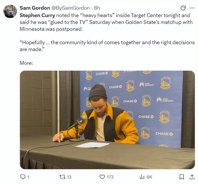 庫里在賽后也回答了很多記者的問題,他談到了自己膝蓋的問題,他表示:昨天來到這里訓(xùn)練時(shí)就感覺膝蓋有些怪怪的,但打完了比賽感覺膝蓋還行,我決定利用這個(gè)夜晚的休息來恢復(fù)它,如果一切順利的話我計(jì)劃出戰(zhàn)背靠背的第二場。