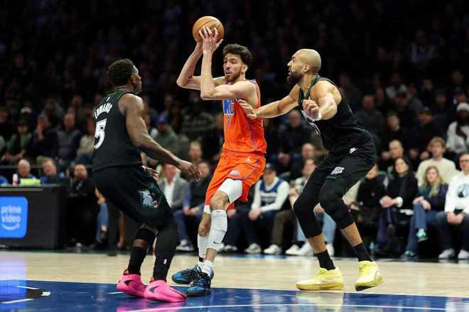 次節(jié)比賽,雙方均是單節(jié)不足30分,麥克丹尼爾斯接連得分,引領(lǐng)森林狼擴(kuò)大45-29領(lǐng)先優(yōu)勢(shì)。雷霆連追5分,森林狼內(nèi)外開花一波11-4攻勢(shì),已經(jīng)擴(kuò)大56-38領(lǐng)先優(yōu)勢(shì)。雷霆一波7-0攻勢(shì)追分,森林狼繼續(xù)擴(kuò)大兩位數(shù)領(lǐng)先優(yōu)勢(shì),亞歷山大單節(jié)6中4得到11+2+2,雷霆單節(jié)28-29再輸1分,上半場(chǎng)結(jié)束雷霆50-63落后森林狼。前兩節(jié)比賽,雷霆三分16中5,亞歷山大13+4+5;森林狼三分28中12,愛德華茲12+2+3與里德3記三分11分。