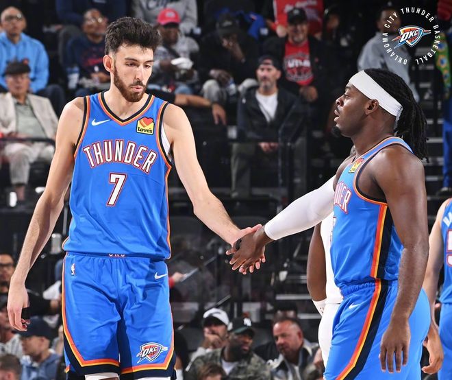 雷霆進(jìn)攻效率排名聯(lián)盟第4位,防守效率排名聯(lián)盟第1位,場(chǎng)均命中13.4記三分排名聯(lián)盟第15位。