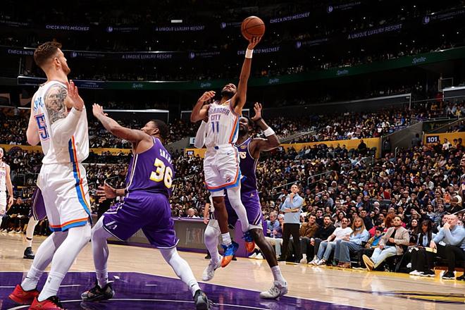 在此前的一場NBA常規(guī)賽中,俄克拉荷馬城雷霆經(jīng)過苦戰(zhàn)后以119比110戰(zhàn)勝了主場作戰(zhàn)的洛杉磯湖人。本場比賽后,結(jié)束了兩連敗的雷霆的戰(zhàn)績提升到了41勝13負(fù),繼續(xù)排名西部榜首位置,與身后的圣安東尼奧馬刺的勝場差為4場;而結(jié)束了3連勝的湖人的戰(zhàn)績則是下滑到了32勝20負(fù),繼續(xù)排名西部第5位,與身前的休斯頓火箭和身后的明尼蘇達(dá)森林狼的勝場差均為半場。