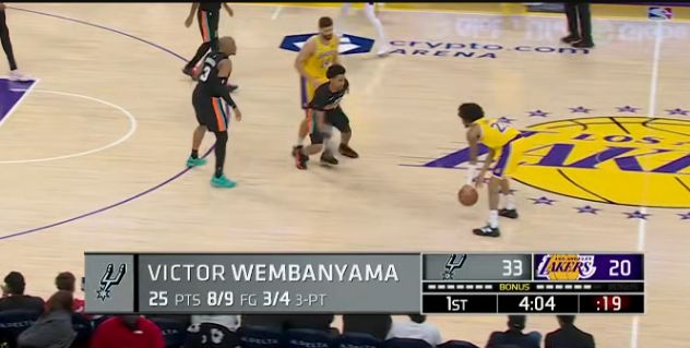 文班亞馬脫下袈裟大開殺戒,直接就把湖人當日本人整,開場8分鐘,9投8中,轟下25分3板;