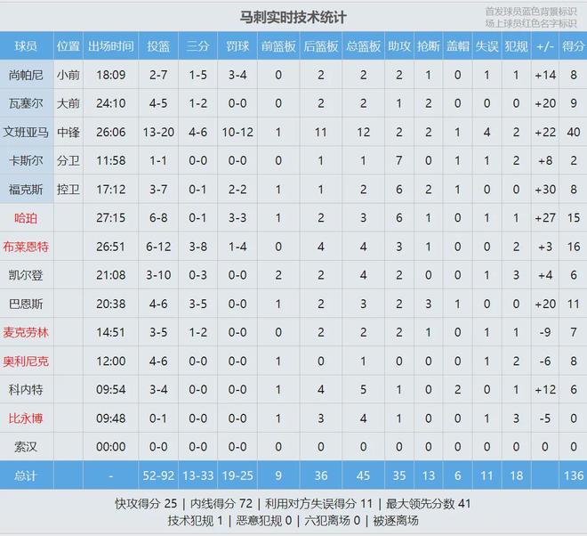 湖人進攻還算不錯,首節(jié)得到30分,但馬刺全隊單節(jié)轟下47分。文班亞馬第一節(jié)只打了8分鐘,9投8中狂轟25分3籃板1搶斷1蓋帽,一個人打爆湖人全隊。第二節(jié)海斯多次在籃下單挑文班亞馬,一個人連拿7分,隨后湖人連續(xù)失誤。
