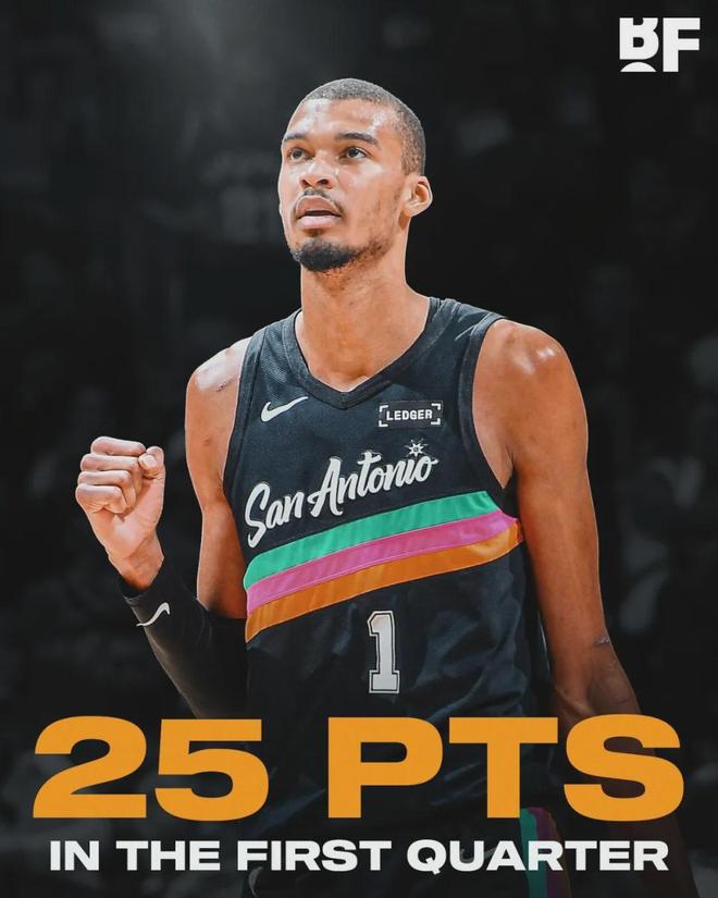 馬刺隊史40+場次,第一名是喬治-格文的67場;30+場次隊史第一也是喬治-格文(288場)。這是文班生涯第三個賽季,還有一堆紀錄等著他。布朗尼投籃10中5,三分2中2,拿到12分3板6助1帽。得分賽季新高,助攻平生涯紀錄。