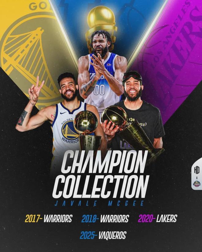跟大白邊相比,麥基在NBA沒拿過籃板王,也沒拿過蓋帽王,但麥基拿了三個(gè)總冠軍,而且是四年三冠(2017年、2018年和2020年)!此外,麥基的NBA生涯也足夠長,從2008年進(jìn)入NBA到2024年離開,他在NBA打了16個(gè)賽季。