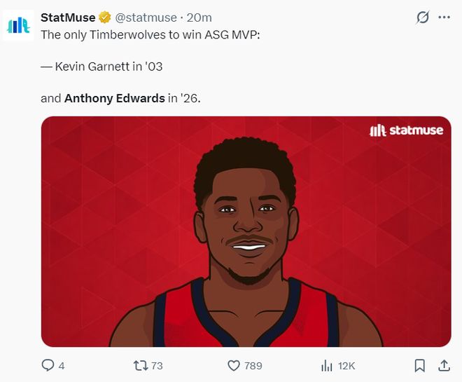 根據(jù)數(shù)據(jù)媒體StatMuse的報道,愛德華茲拿到2026年AMVP是森林狼隊史2003年的凱文-加內(nèi)特后首人。