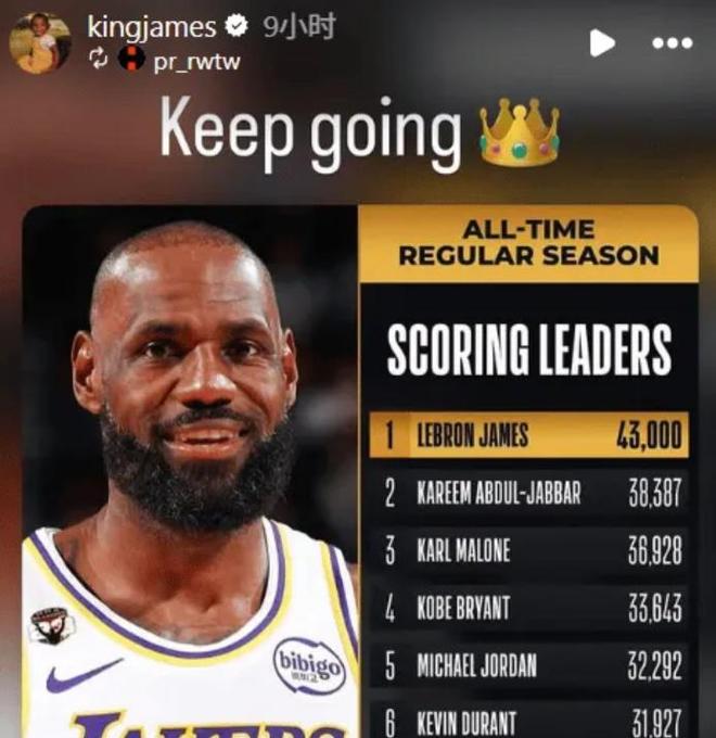 對(duì)榮譽(yù)等身的詹姆斯來說,生涯總得分再次突破只是他所有榮譽(yù)的一小部分,但對(duì)NBA來說卻是一個(gè)大事件,這是總得分第一人的再次突破,他將這個(gè)標(biāo)桿又拉高了很多,達(dá)到后來人幾乎難以企及的高度。
