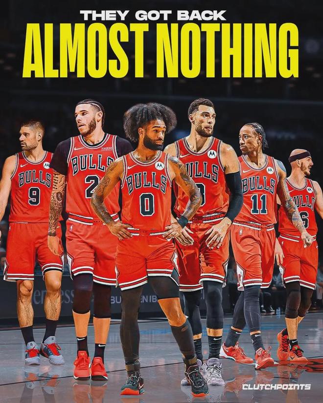 2021年夏天,球哥4年8000萬加盟公牛。2022年1月15日,遭遇左膝半月板撕裂,三次膝蓋手術(shù),2024年10月24日復(fù)出。2021-22賽季,受傷之前的球哥場(chǎng)均得到13分5.4籃板5.1助攻1.8搶斷,三項(xiàng)命中率:42.3%,42.3%,75%!