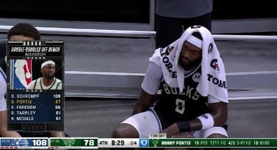 雄鹿:字母哥與庫茲馬缺席,波蒂斯4記三分18分10籃板,托馬斯17分6助攻,希姆斯10分7籃板,羅林斯15分。