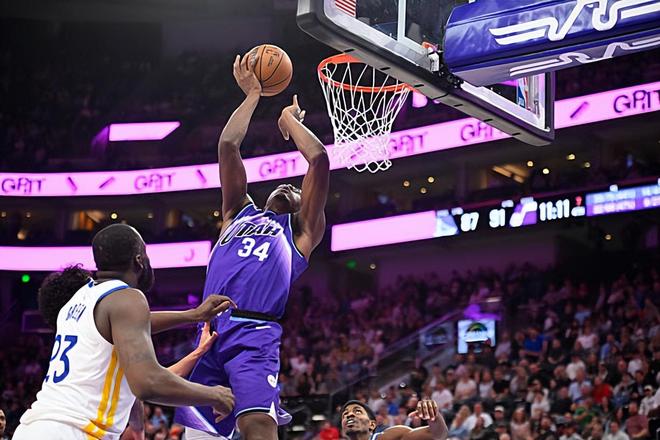 本場比賽中,爵士的替補(bǔ)中鋒奧斯卡-希布韋(Oscar Tshiebwe)的表現(xiàn)還是相當(dāng)不錯的。希布韋全場出場19分36秒,投籃6中4,罰球2中2,得到了10分8籃板1助攻1搶斷的數(shù)據(jù),其中還包括了4個前場籃板,還有1次犯規(guī),正負(fù)值更是達(dá)到了全場最高的+10。希布韋在進(jìn)攻端還是展現(xiàn)出了不俗的前場籃板爭搶能力,他在籃下進(jìn)攻方面的效率也是相當(dāng)不錯的,他也是在對手內(nèi)線制造了一定的威脅。除此之外,他在后場籃板爭搶方面的表現(xiàn)也還算不錯,他在防守端也算是撐住場面了??上某鰣鰰r間比較有限,他也沒有辦法打出更高水準(zhǔn)的數(shù)據(jù),不過有一點(diǎn)也是肯定的,他的不俗表現(xiàn)也是為球隊的勝利做出了巨大的貢獻(xiàn)。