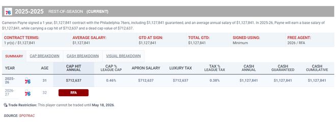 最終費城跟佩恩簽下一年71.2萬的底薪合同,換言之佩恩是倒貼了16.3萬美元的買斷費加盟費城,他為了這次的機會算是付出一切了,好在是迎來了個人的生涯之夜,此役后他肯定能承擔更多的戲份。