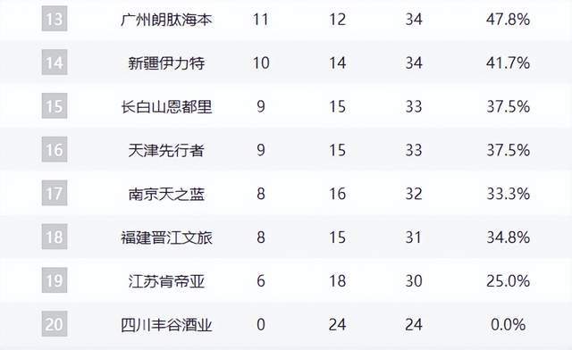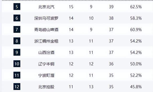 寧波12勝11負(fù)、北控11勝13負(fù)、廣州11勝12負(fù),季后賽邊緣廝殺慘烈。