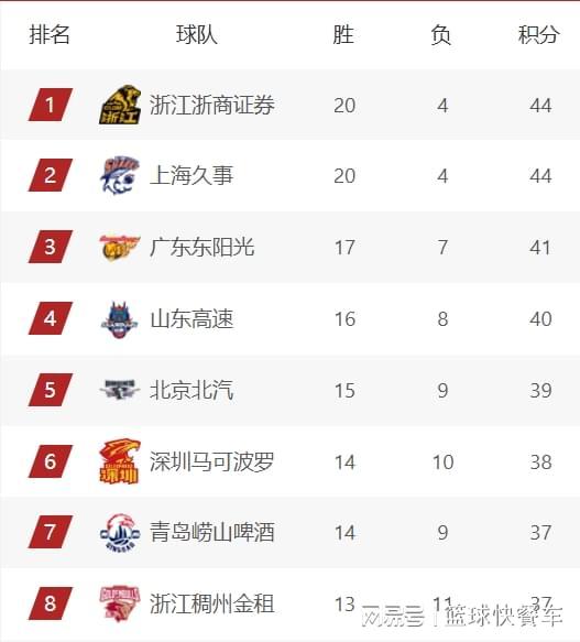 附:CBA積分榜最新排名