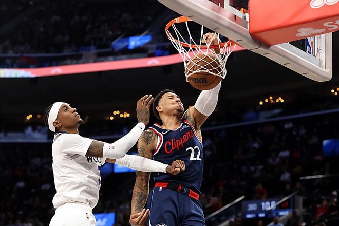 本場比賽中,快船的替補側翼新星喬丹-米勒(Jordan Miller)的表現(xiàn)并不理想。米勒全場出場29分22秒,投籃13中6,三分線外4中0,罰球4中2,得到了14分3籃板7助攻1搶斷的全面數(shù)據(jù),還有1次失誤和1次犯規(guī),正負值為+10。米勒雖然在外線投籃方面沒有找到自己的手感,但是他在突破方面的表現(xiàn)還是相當不錯的,他也是通過自己的經驗和技巧得到了一些分數(shù)。不僅如此,米勒在傳球和組織方面的表現(xiàn)也是值得肯定的,他也是能夠給隊友送出不少精妙傳球的。除此之外,米勒在防守端的表現(xiàn)也是中規(guī)中矩的水平,也是起到了一定的作用的。至少在本場比賽中,米勒是展現(xiàn)出了自己全面的個人能力的,他也為球隊的大勝做出了不小的貢獻。