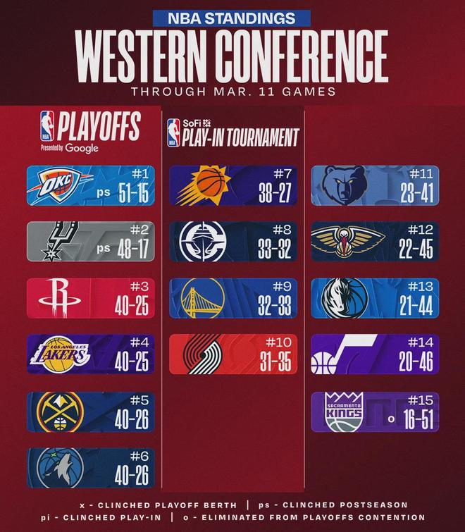 本場(chǎng)比賽過(guò)后,快船勝率達(dá)到50.8%,取得33勝32負(fù)戰(zhàn)績(jī)排名西部第八,已領(lǐng)先第九的勇士1個(gè)勝場(chǎng),但仍落后第六的森林狼多達(dá)6個(gè)勝場(chǎng)。