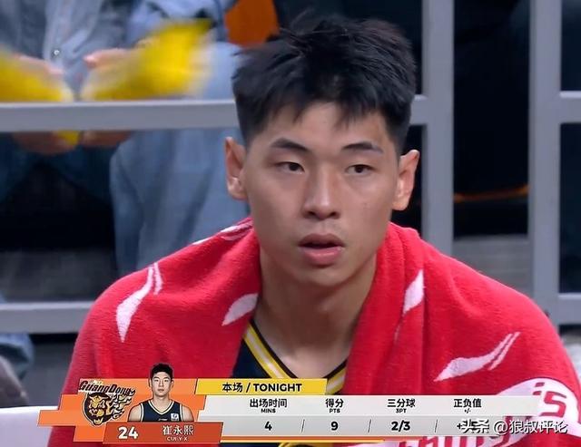 崔永熙替補(bǔ)登場4分鐘,首次出手三分命中,隨后造成三分犯規(guī),三罰全中,下一回合繼續(xù)飆中三分,幫助廣東男籃轟出一波10-0的攻勢。