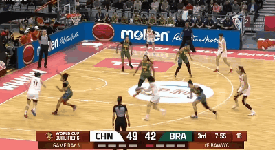 末節(jié)較量,巴西女籃改打聯(lián)防,而中國(guó)隊(duì)顯然并沒(méi)有很好的應(yīng)對(duì)策略,幾次進(jìn)攻未果后被巴西女籃在2分鐘內(nèi)打出一波8-1的小高潮。