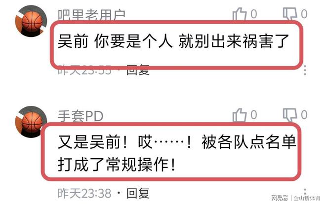 吳前關(guān)鍵時(shí)刻的兩個(gè)低級(jí)錯(cuò)誤,賽后也是被網(wǎng)友紛紛吐槽?!皡乔耙粋€(gè)無(wú)腦犯規(guī),一個(gè)發(fā)球失誤,送走比賽,不想打就回去好好繼承家產(chǎn)吧,受不了?!?;“吳前還打個(gè)鬼,還不如好好培養(yǎng)李月洲。”;“吳前 你,就別出來(lái)禍害了”;“又是吳前!哎……!被各隊(duì)點(diǎn)名單打成了常規(guī)操作!”;“吳全,趕緊退役吧!”……