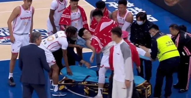第一節(jié)還剩2分57秒, 小將馮熙瑞在一次空中防守對抗中,重重摔倒在地板上,腳踝骨折嚴重變形,隨后被擔架抬離出場,傷情嚴重,很可能會影響到以后的職業(yè)生涯。