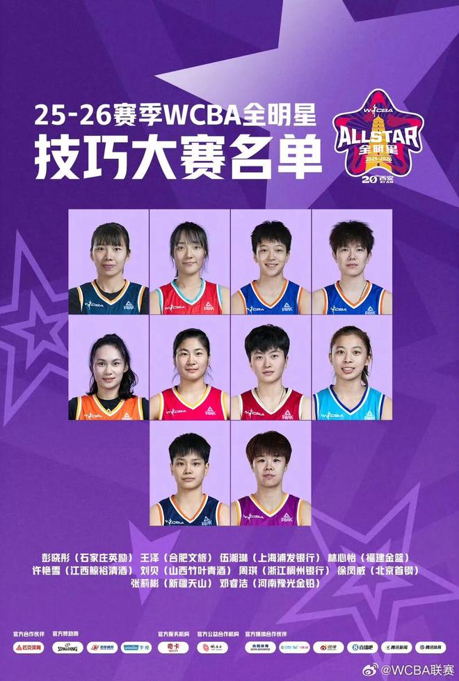 萬濟(jì)圓入選全明星正賽南區(qū)替補(bǔ)陣容;李雨汧、代夢帆入選星銳賽南區(qū)陣容;董可爾入選三分球大賽;周琪入選技巧大賽。