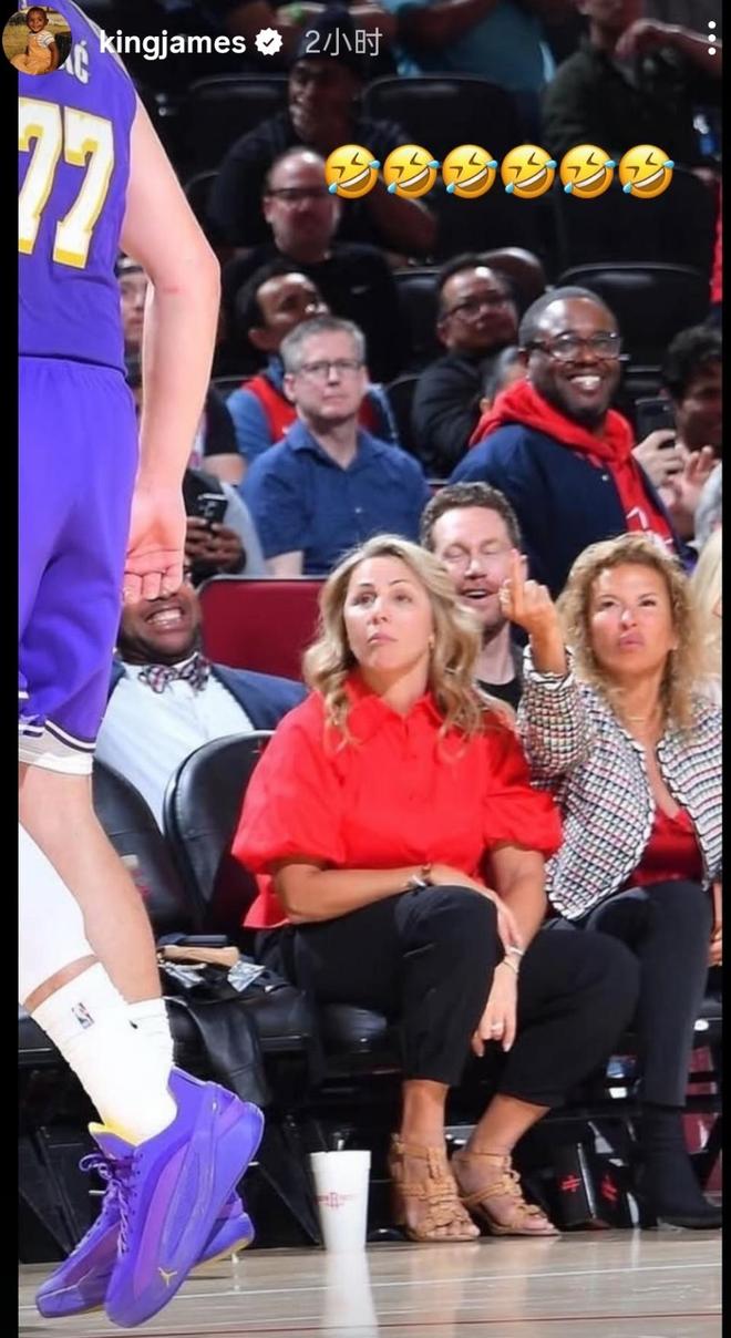 第三個動態(tài)很有趣,他在調(diào)侃東契奇與球迷的互動。詹姆斯連發(fā)6個笑哭表情,曬出場邊挑釁球迷對東契奇豎中指的名場面,用幽默方式力挺隊友,也暗合了東契奇賽后提到的“被球迷垃圾話點燃斗志”的故事。