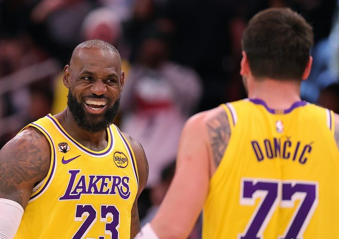面對(duì)83分先生阿德巴約,面對(duì)開局落后13分的被動(dòng)局面,滿分組合各司其職,聯(lián)手導(dǎo)演大逆轉(zhuǎn)!老詹出戰(zhàn)37分鐘,12投8中,罰球5中3,貢獻(xiàn)19分+15籃板+10助攻的三雙數(shù)據(jù),高效完成終結(jié),盤活全隊(duì)進(jìn)攻。東契奇出戰(zhàn)37分鐘,30投18中(三分球17中9),罰球19中15,爆砍60分+7籃板+3助攻+5搶斷,關(guān)鍵時(shí)刻暴走連得16分殺死比賽。賽后,老詹一番話顯然是說給83分先生聽的:一切都是順其自然,東契奇完全沒有刻意爭(zhēng)取60分。與此同時(shí),滿分組合一戰(zhàn)刷爆多項(xiàng)NBA紀(jì)錄。
