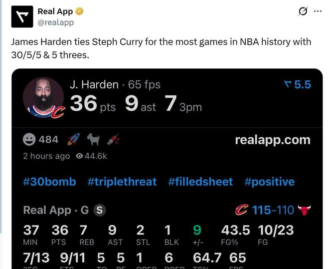 最后本場(chǎng)是哈登生涯第105場(chǎng)砍下至少30分5板5助+5三分,成功追平庫(kù)里并列歷史第一。