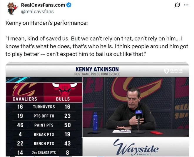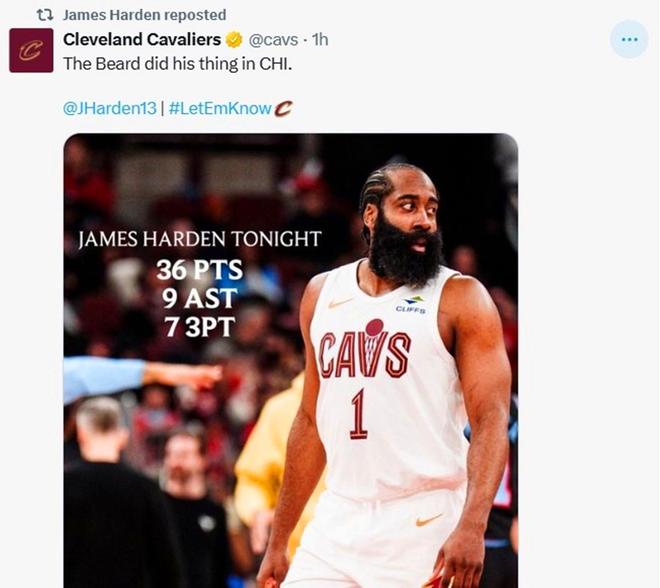 因此哈登也成為騎士隊(duì)贏球封面人物,騎士官方賽后專門發(fā)文稱贊到:“大胡子在芝加哥大顯身手?!?/p>