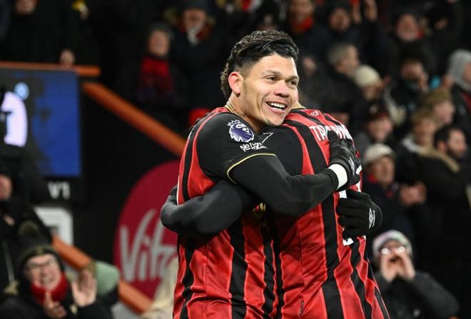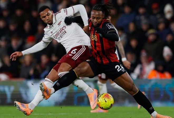 比賽第8分鐘,馬杜埃凱在禁區(qū)右側(cè)帶球內(nèi)切爆射,結(jié)果踢飛了,皮球直奔觀眾席。2分鐘后,阿森納丟球了!加布里埃爾竟然出現(xiàn)極其低級的失誤,把球直接橫傳給埃萬尼爾松。埃萬尼爾松獲得面對空門的機會,輕松把球打進。伯恩茅斯獲得夢幻般的開局。不過,很快阿森納就扳平比分。第16分鐘,加布里埃爾將功補過,他在禁區(qū)內(nèi)抽射破門!