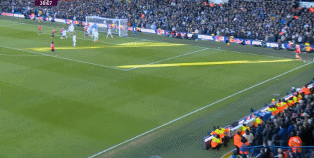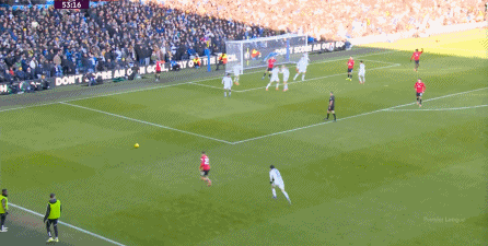 所以在第35分鐘,是利茲聯(lián)通過前場(chǎng)的定位球二次進(jìn)攻,在約羅身前搶到落點(diǎn),從而擊中了球門,打出了真正的好機(jī)會(huì):
