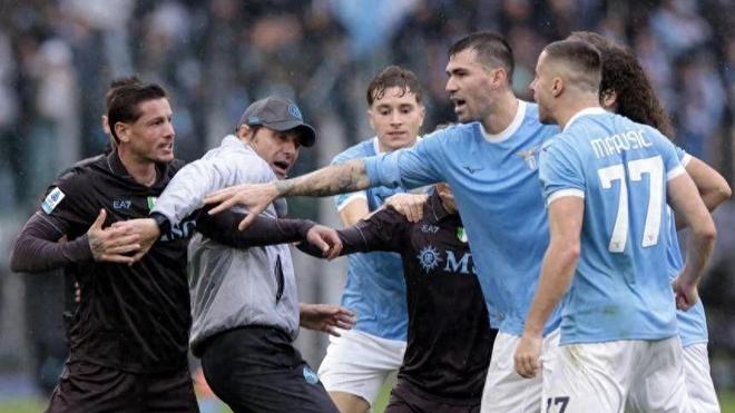 孔蒂?zèng)_入球場(chǎng)平息混戰(zhàn)!那不勒斯2-0拉齊奧,三張紅牌引爆意甲