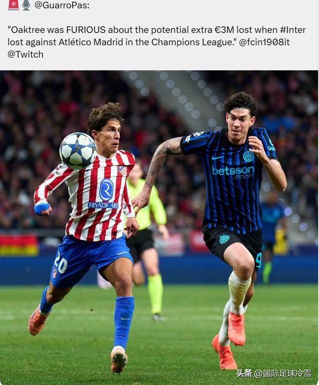 第三條新聞:跟隊記者瓜羅介紹,在國米遭遇絕殺不敵馬競后,橡樹資本非常憤怒(Furious)。