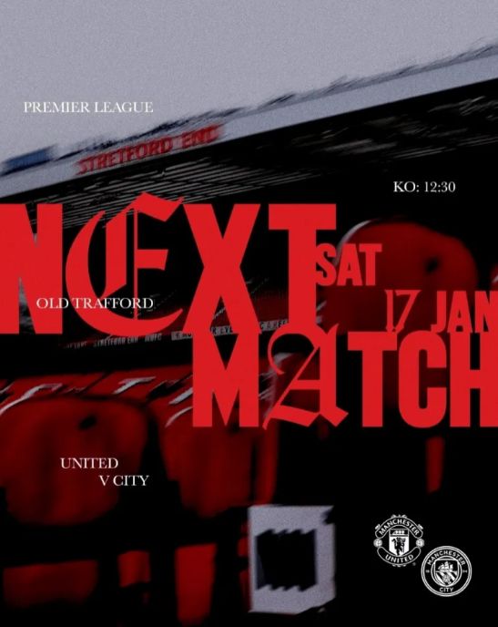 北京時間1月17日20點30分,曼聯(lián)將在英超第22輪比賽中主場對陣曼城。 曼聯(lián)官方社媒發(fā)布海報,預(yù)熱這場重要的德比戰(zhàn),海報背景為老特拉福德球場。