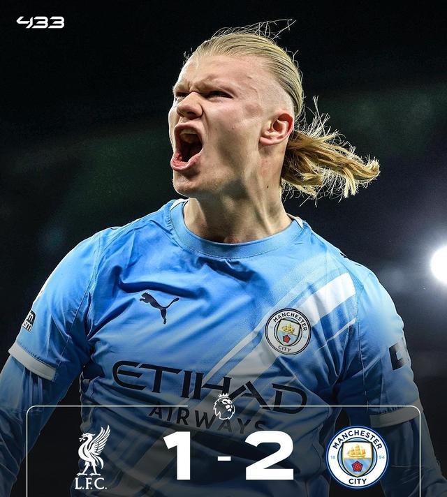 下半場補時第3分鐘,努內(nèi)斯在禁區(qū)內(nèi)阿利松出擊放倒,主裁判果斷判罰點球并出示黃牌,哈蘭德主罰點球命中逆轉(zhuǎn)絕殺,脫衣慶祝領到黃牌,比分1-2!