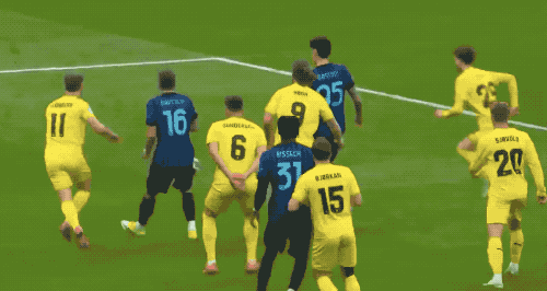 下半場踢了10分鐘,國米又完成了5次射門,但明顯有些操之過急。第55分鐘,小圖拉姆高速盤帶后的射門,被防守球員擋出底線。