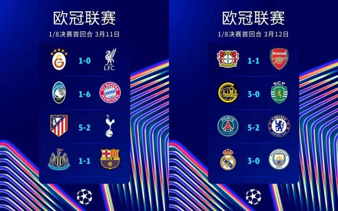 歐冠1/8決賽首回合綜述:閃耀哥5連勝神擋殺神,英超6隊(duì)得2分丟16球