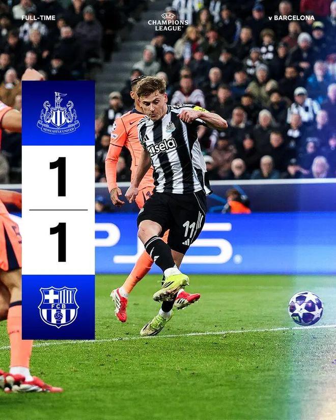 紐卡斯?fàn)柭?lián)1比1巴塞羅那
